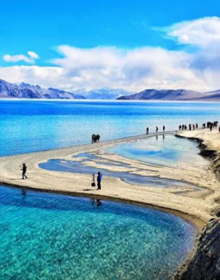 After your breakfast drive to pangong Lake Via shayouk River . Pangong Lake, situated at 14,000 feet (4,267 m). A long narrow basin of inland drainage, hardly six to seven kilometer at its widest point and over 130km long, it is bisected by the international border between India and China. A few years back the government decided to open it to tourists though the lake and its surrounding is under army surveillance. Enjoy the landscape in the back drop of the Lake. One rarely feels so close to nature and environment and the scenery is unforgettable. Evening at leisure and overnight stay at the Camp on the shore of the Lake...